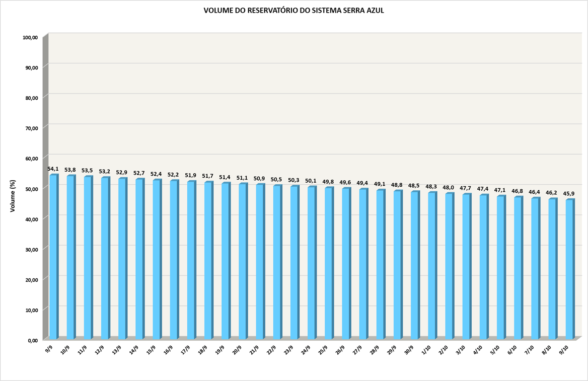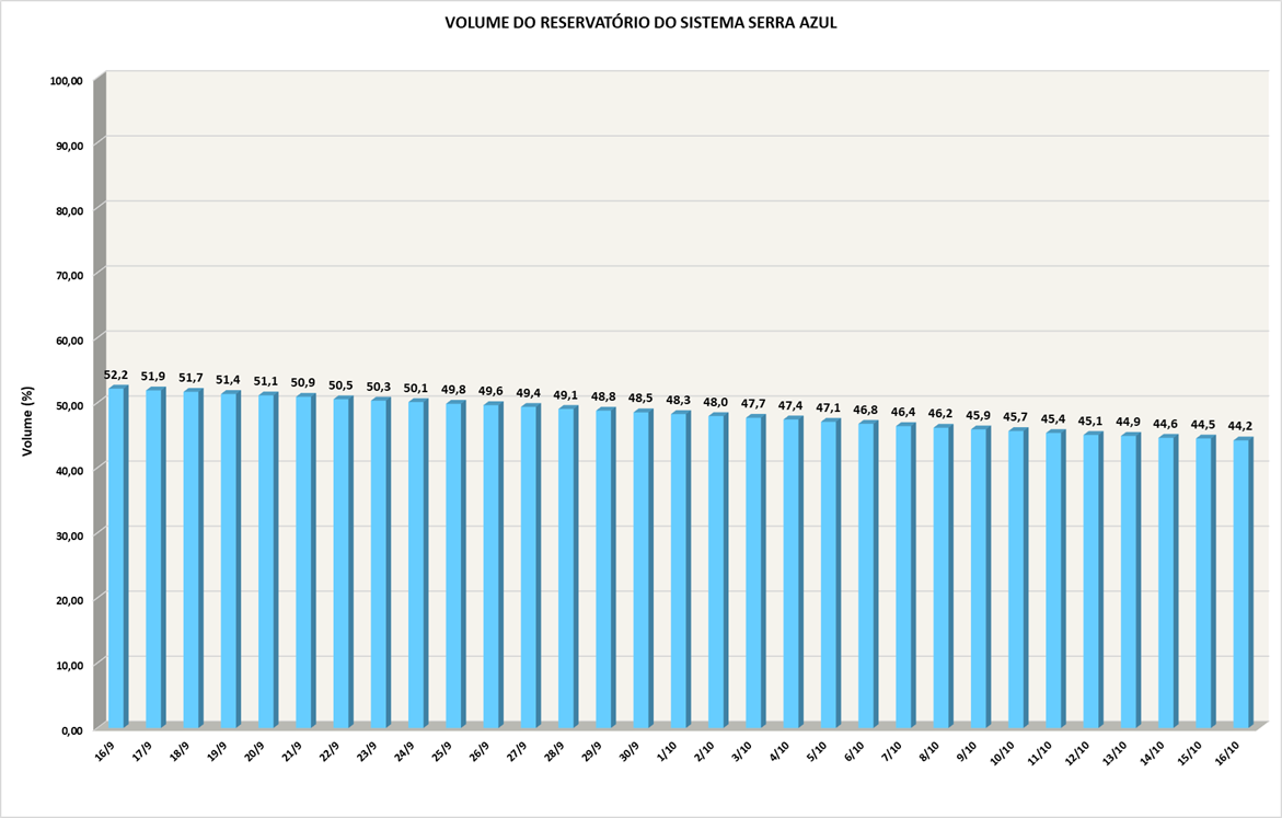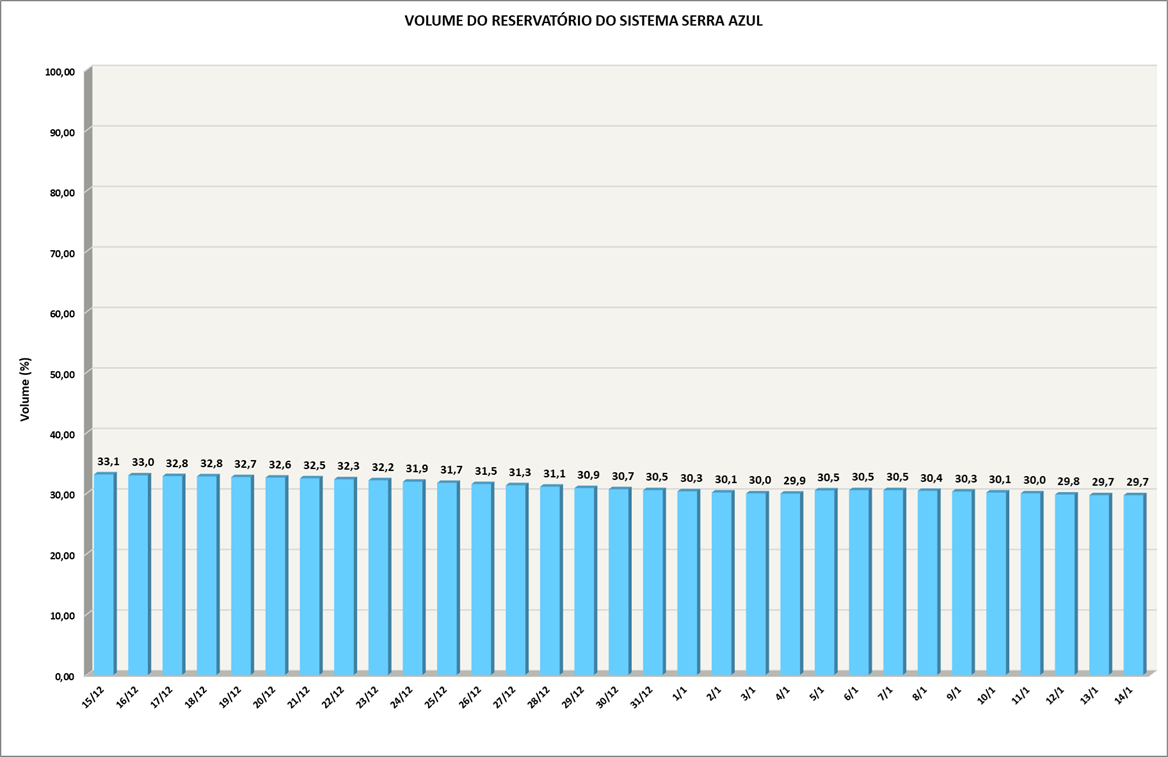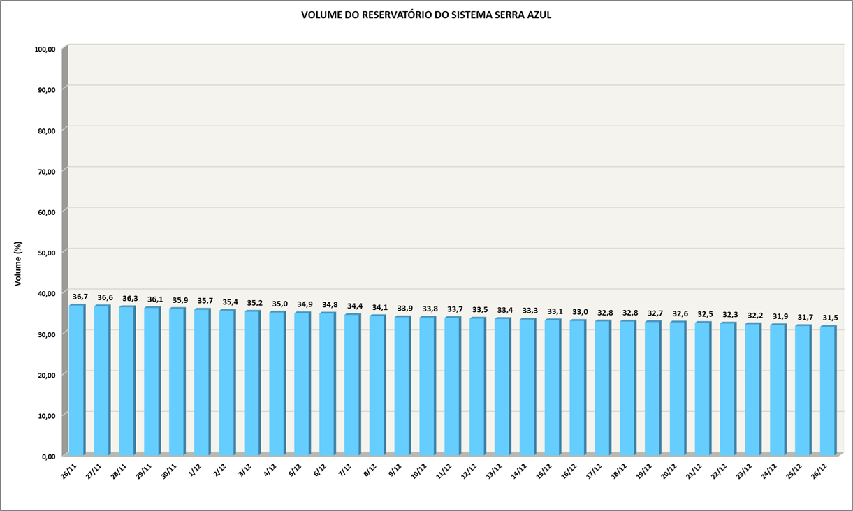 Volume do reservatório Serra Azul nos últimos 30 dias