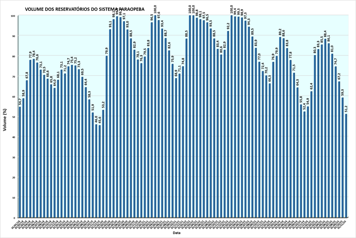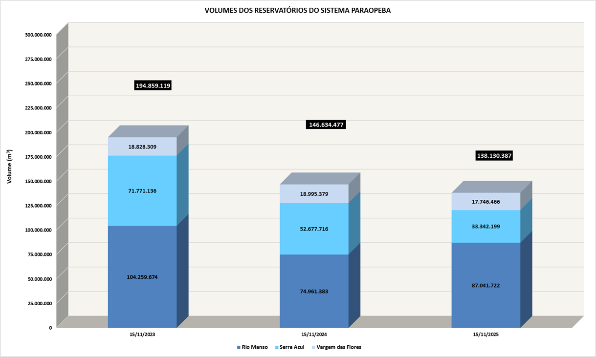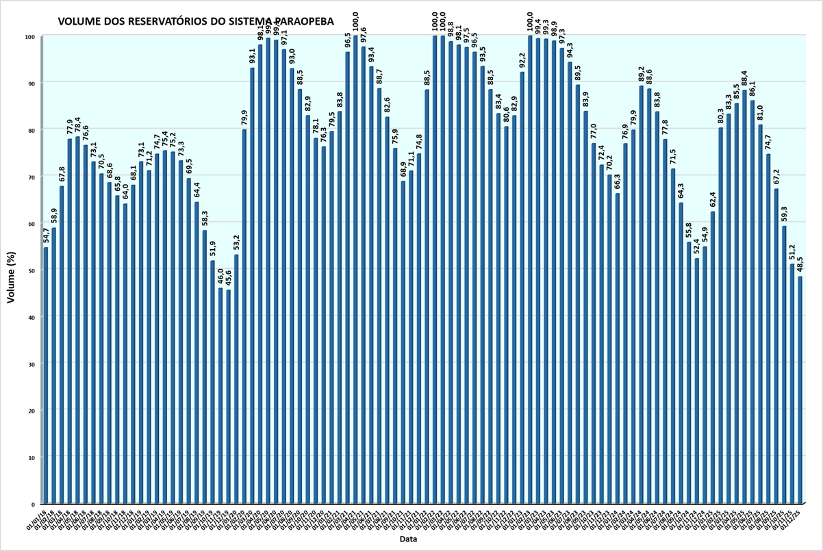 Monitoramento mensal dos volumes de água por reservatório entre 2018 e 2025