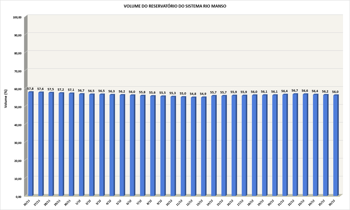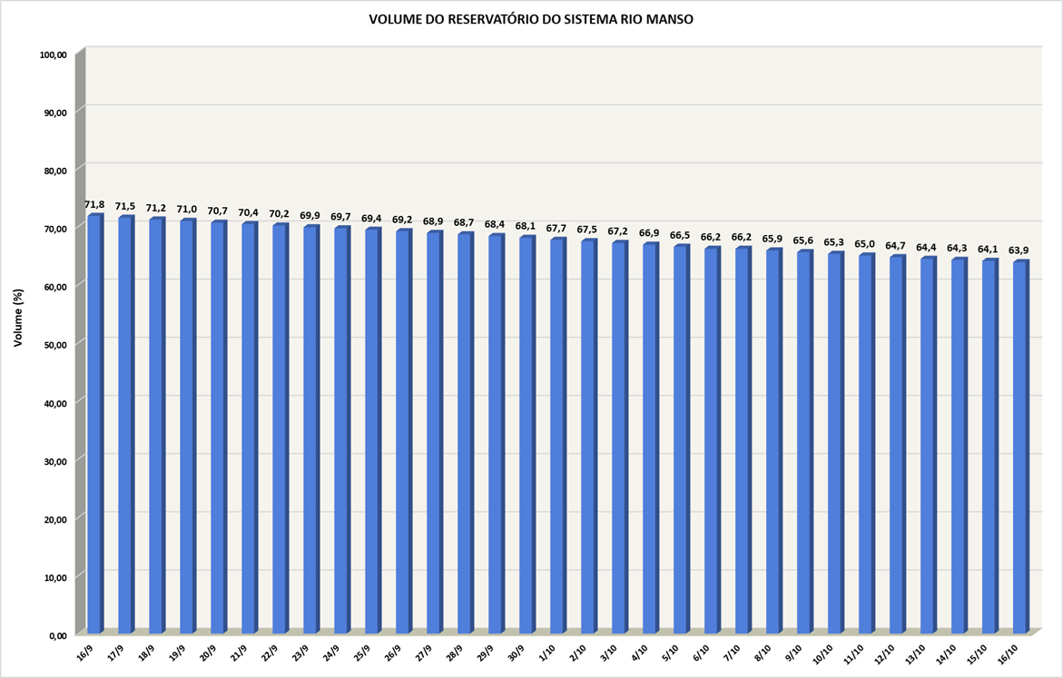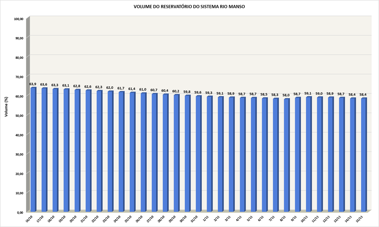 Volume do reservatório Rio Manso nos últimos 30 dias