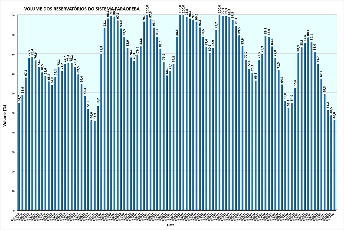 Monitoramento mensal dos volumes de água por reservatório entre 2018 e 2026
