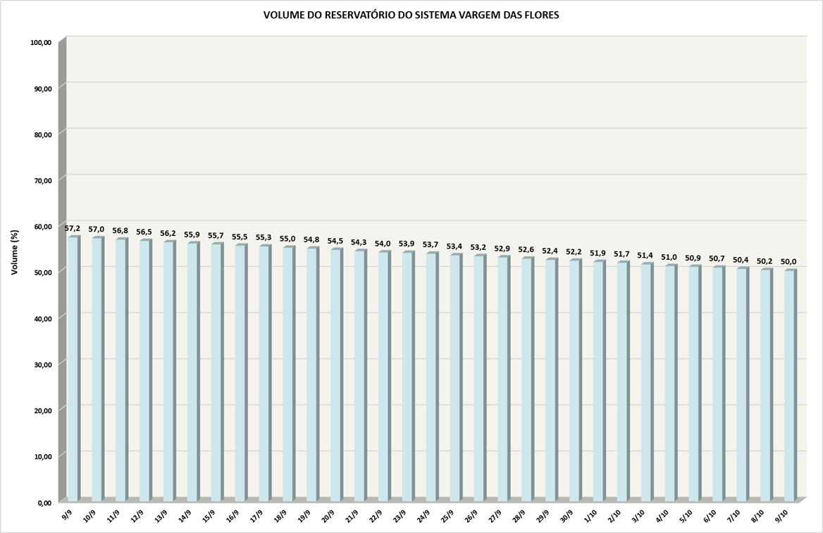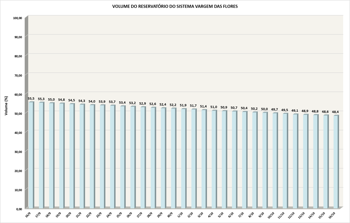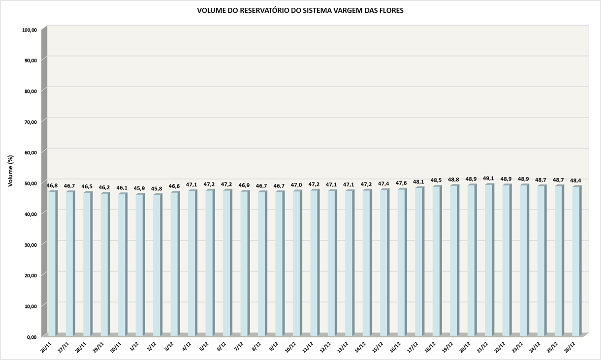 Volume do reservatório Vargem das Flores nos últimos 30 dias