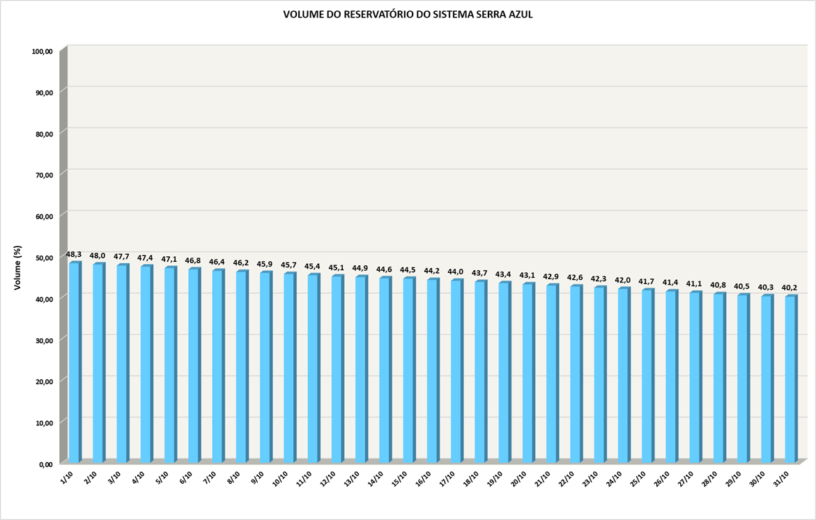 Volume do reservatório Serra Azul nos últimos 30 dias