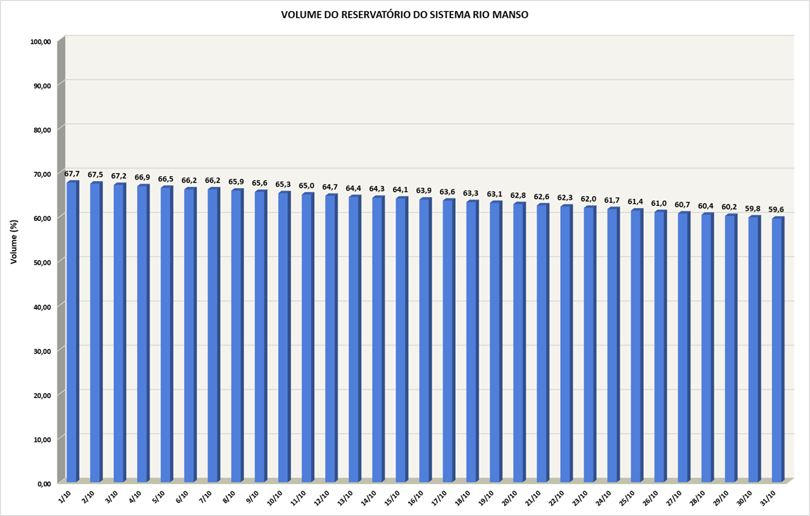 Volume do reservatório Rio Manso nos últimos 30 dias