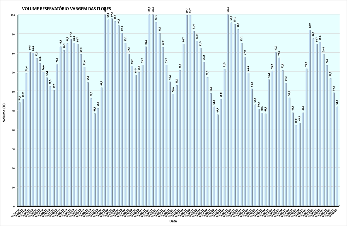 Volume do reservatório Vargem das Flores nos últimos 30 dias