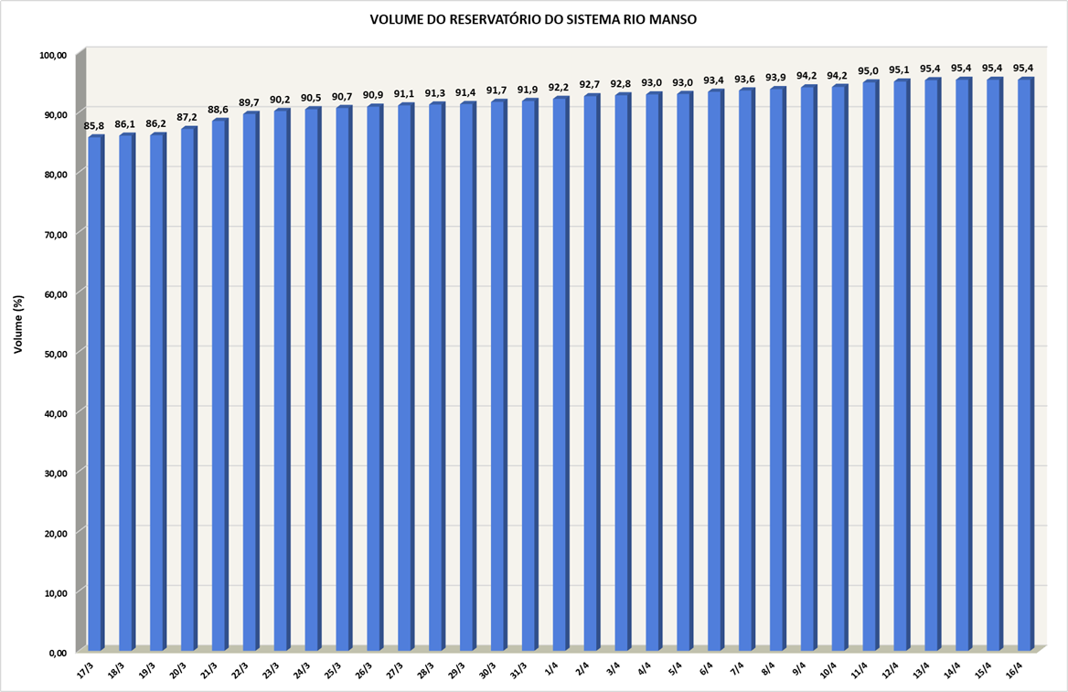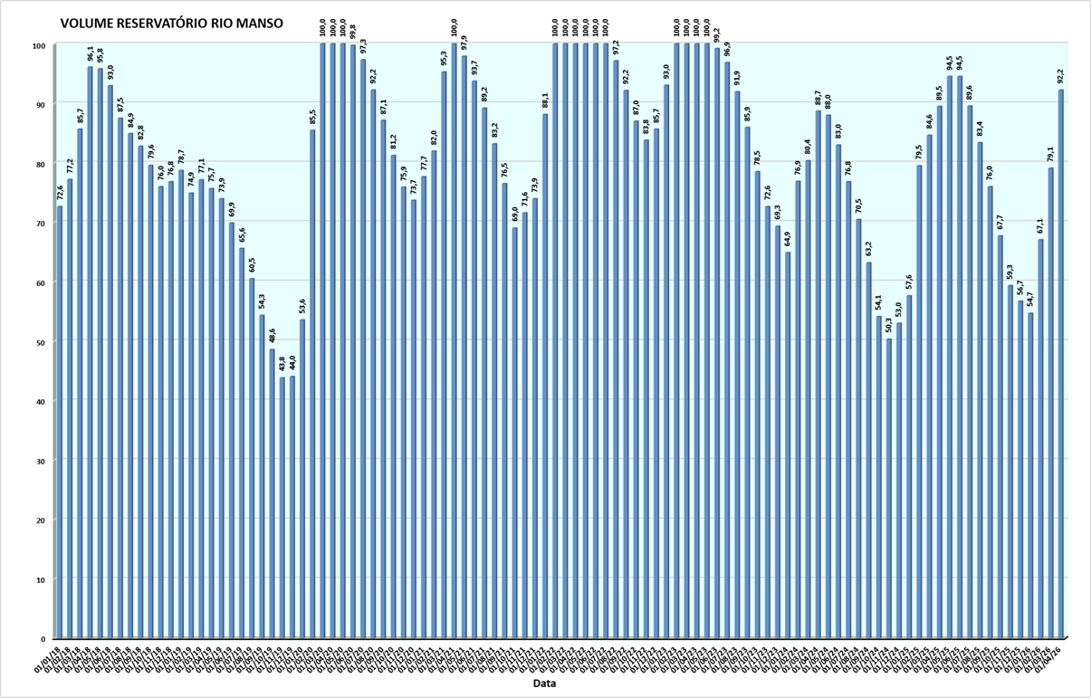 Volume do reservatório Rio Manso nos últimos 30 dias