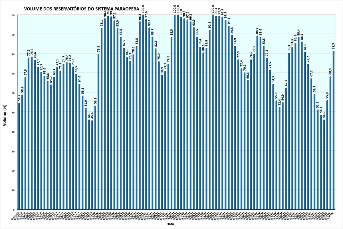 Monitoramento mensal dos volumes de água por reservatório entre 2018 e 2026