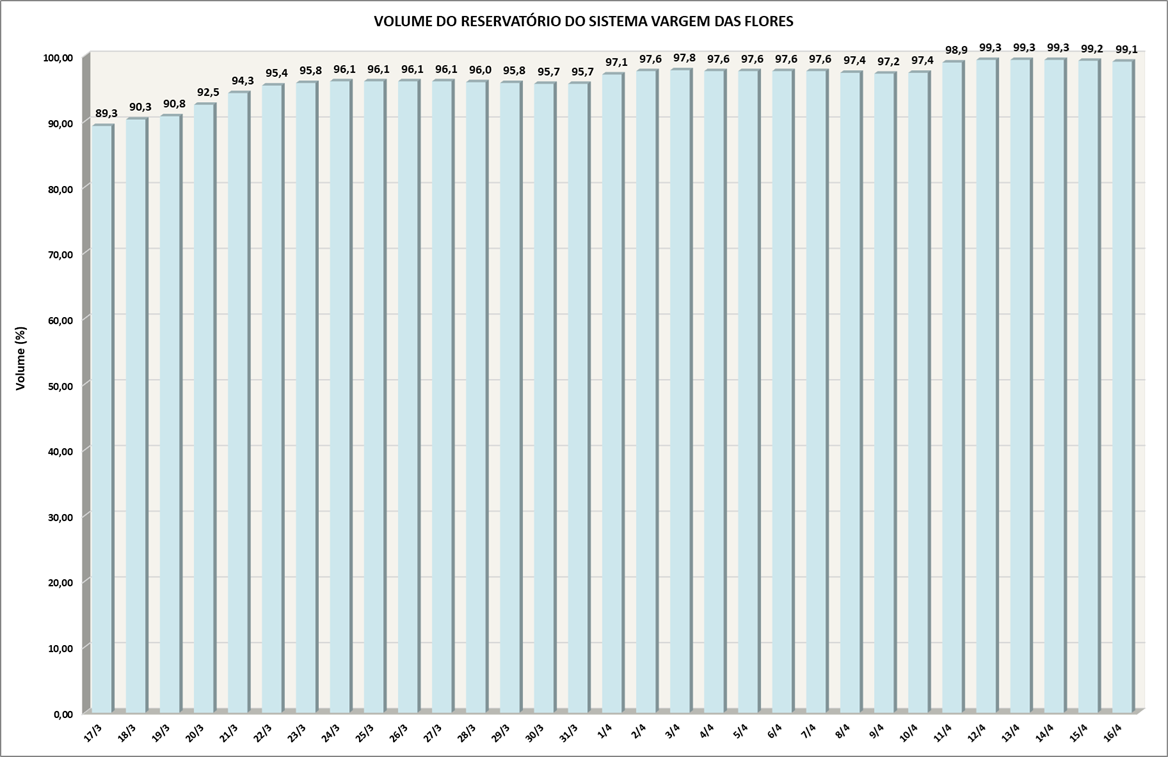 Volume do reservatório Vargem das Flores nos últimos 30 dias