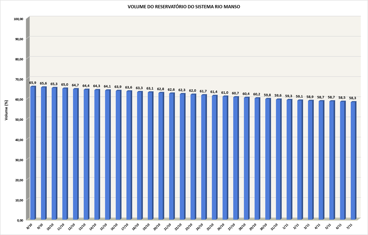 Volume do reservatório Rio Manso nos últimos 30 dias