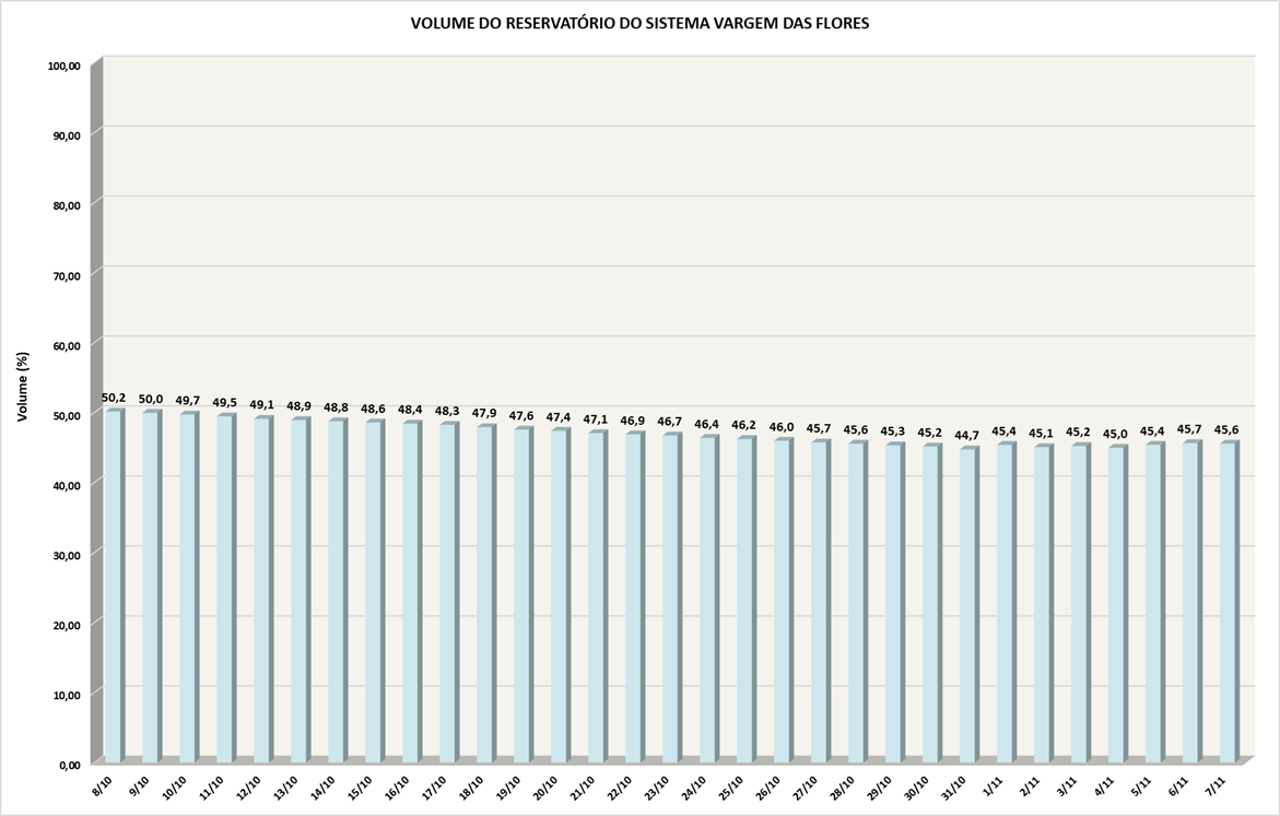 Volume do reservatório Vargem das Flores nos últimos 30 dias