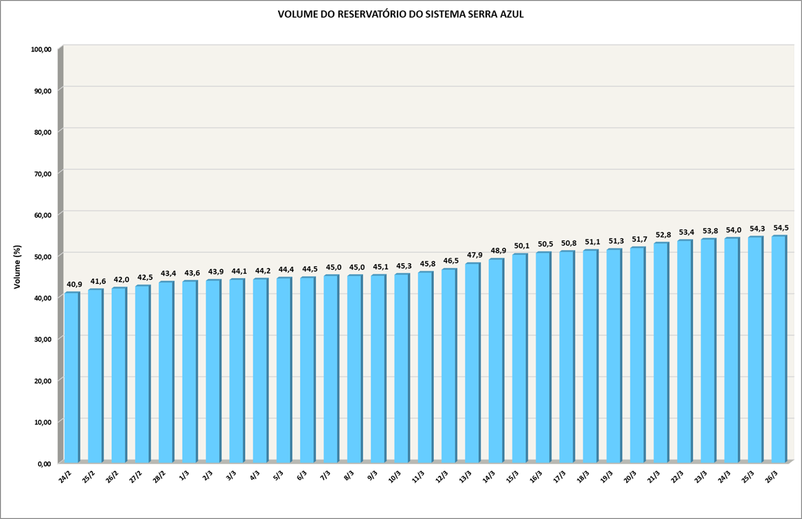 Volume do reservatório Serra Azul nos últimos 30 dias