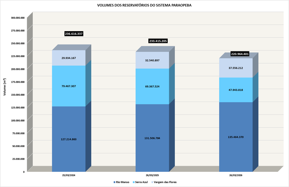 Monitoramento mensal dos volumes de água por reservatório entre 2018 e 2026