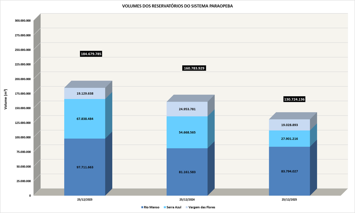 Monitoramento mensal dos volumes de água por reservatório entre 2018 e 2025