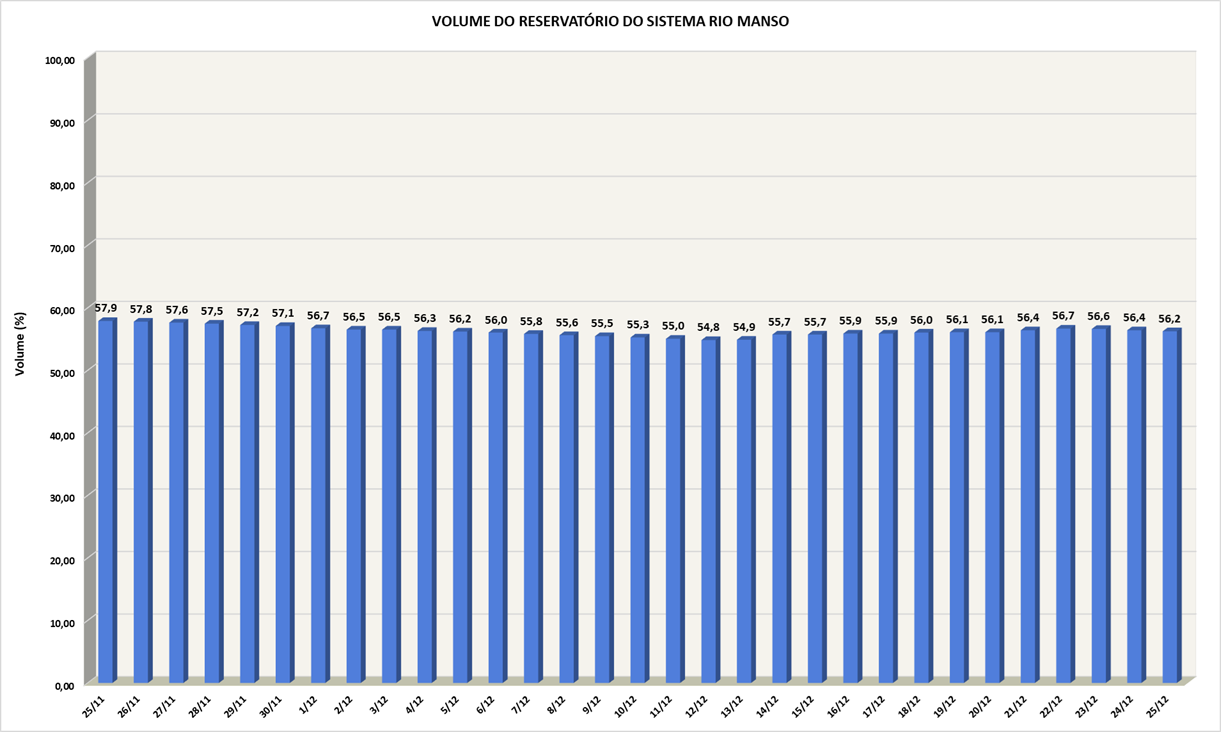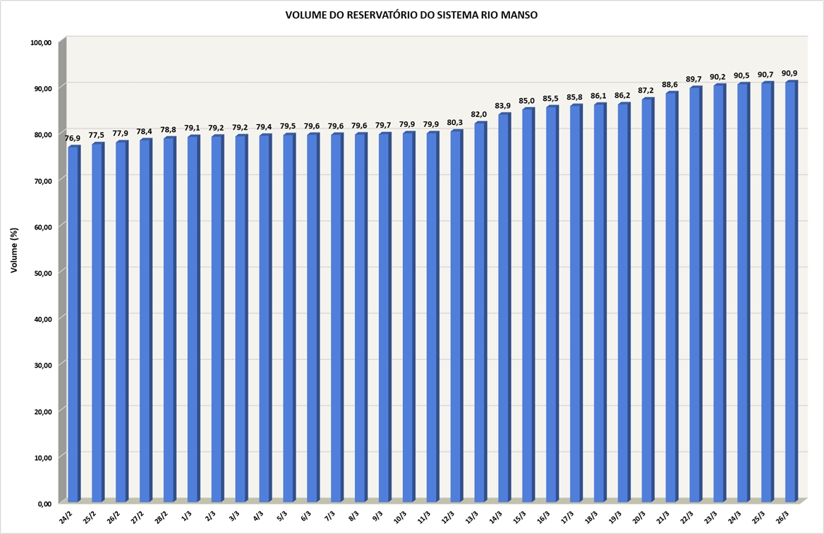 Volume do reservatório Rio Manso nos últimos 30 dias