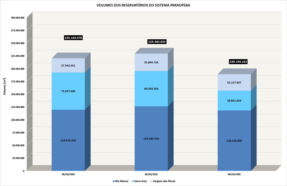 Monitoramento mensal dos volumes de água por reservatório entre 2018 e 2026