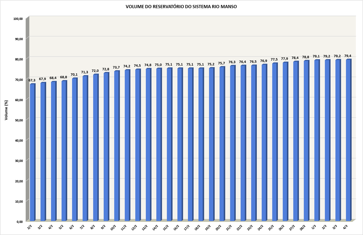 Volume do reservatório Rio Manso nos últimos 30 dias