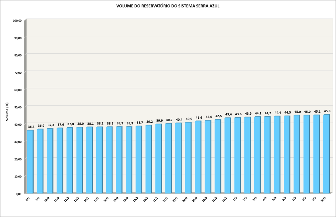 Volume do reservatório Serra Azul nos últimos 30 dias