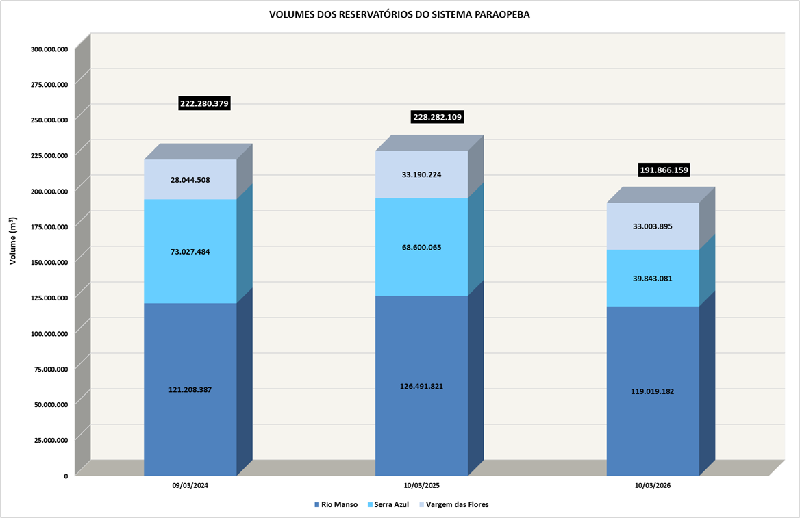 Monitoramento mensal dos volumes de água por reservatório entre 2018 e 2026