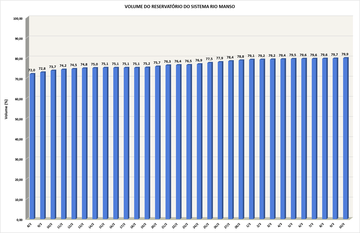 Volume do reservatório Rio Manso nos últimos 30 dias