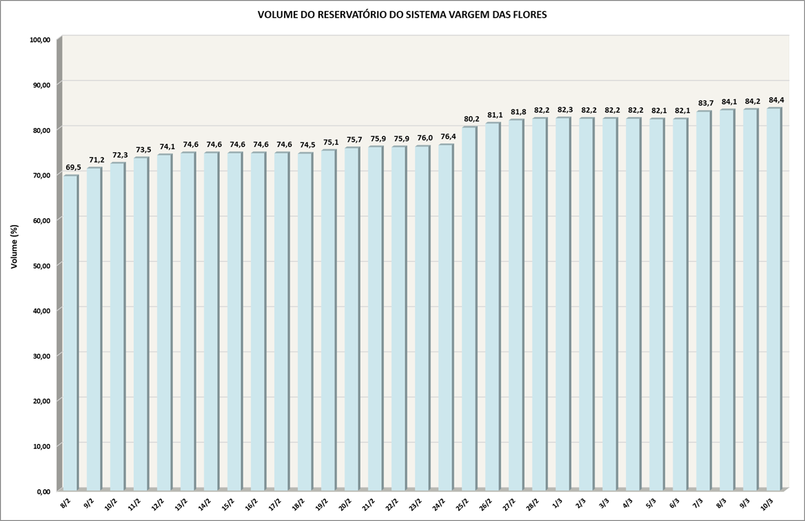 Volume do reservatório Vargem das Flores nos últimos 30 dias