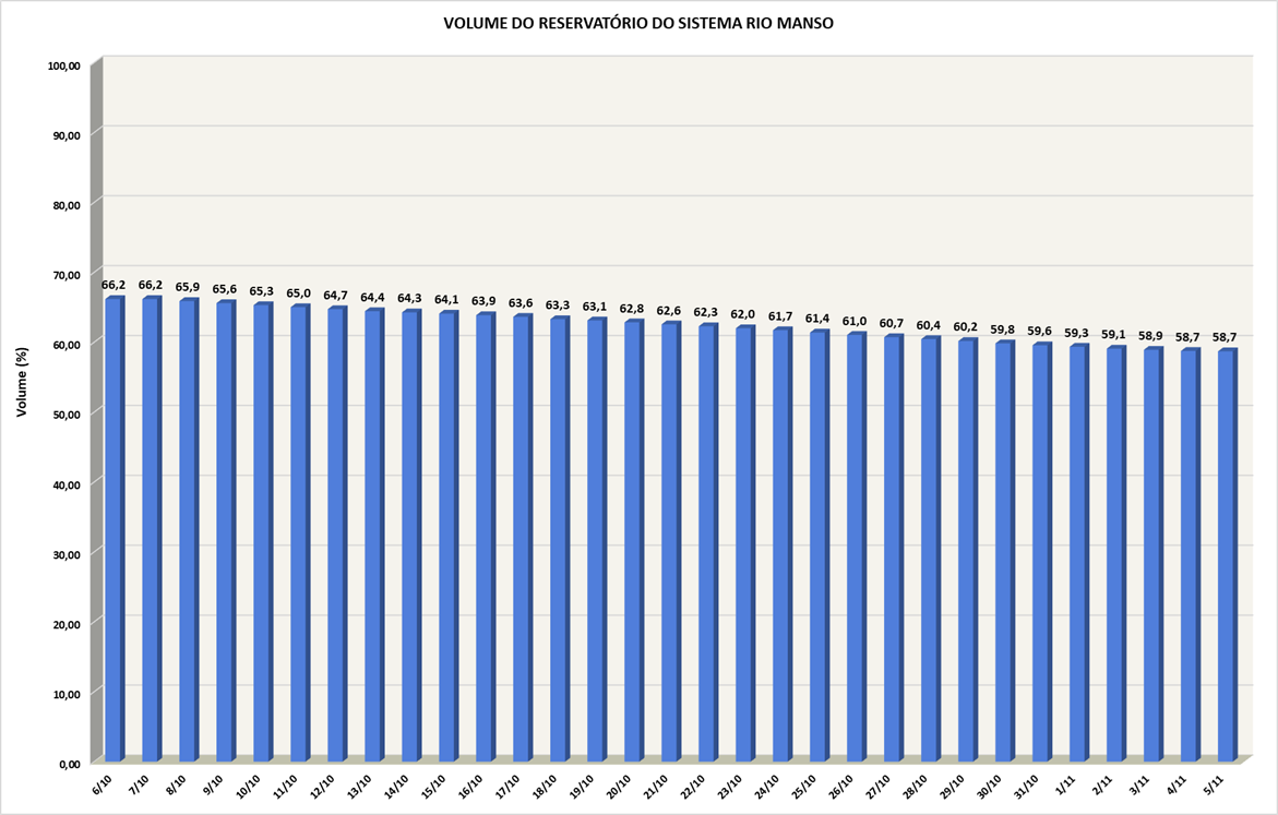 Volume do reservatório Rio Manso nos últimos 30 dias