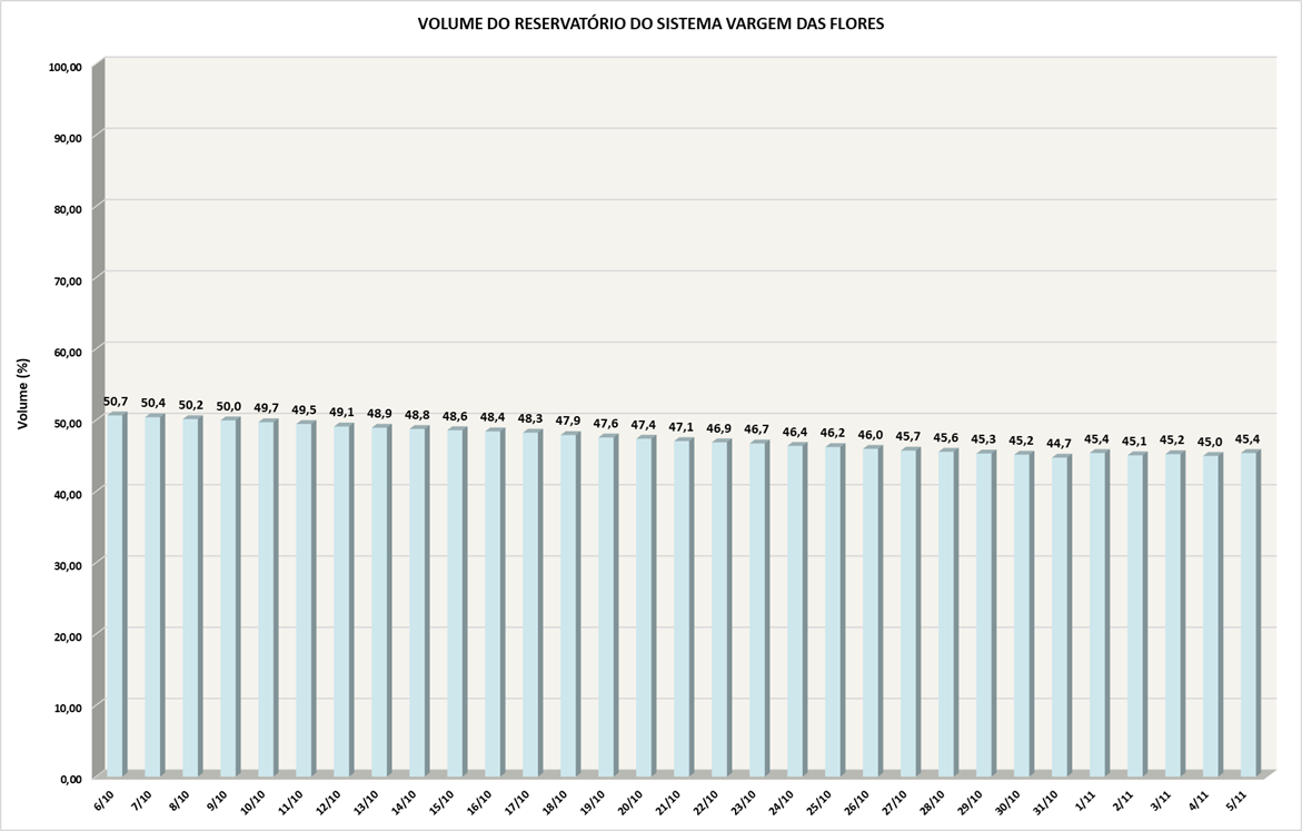 Volume do reservatório Vargem das Flores nos últimos 30 dias