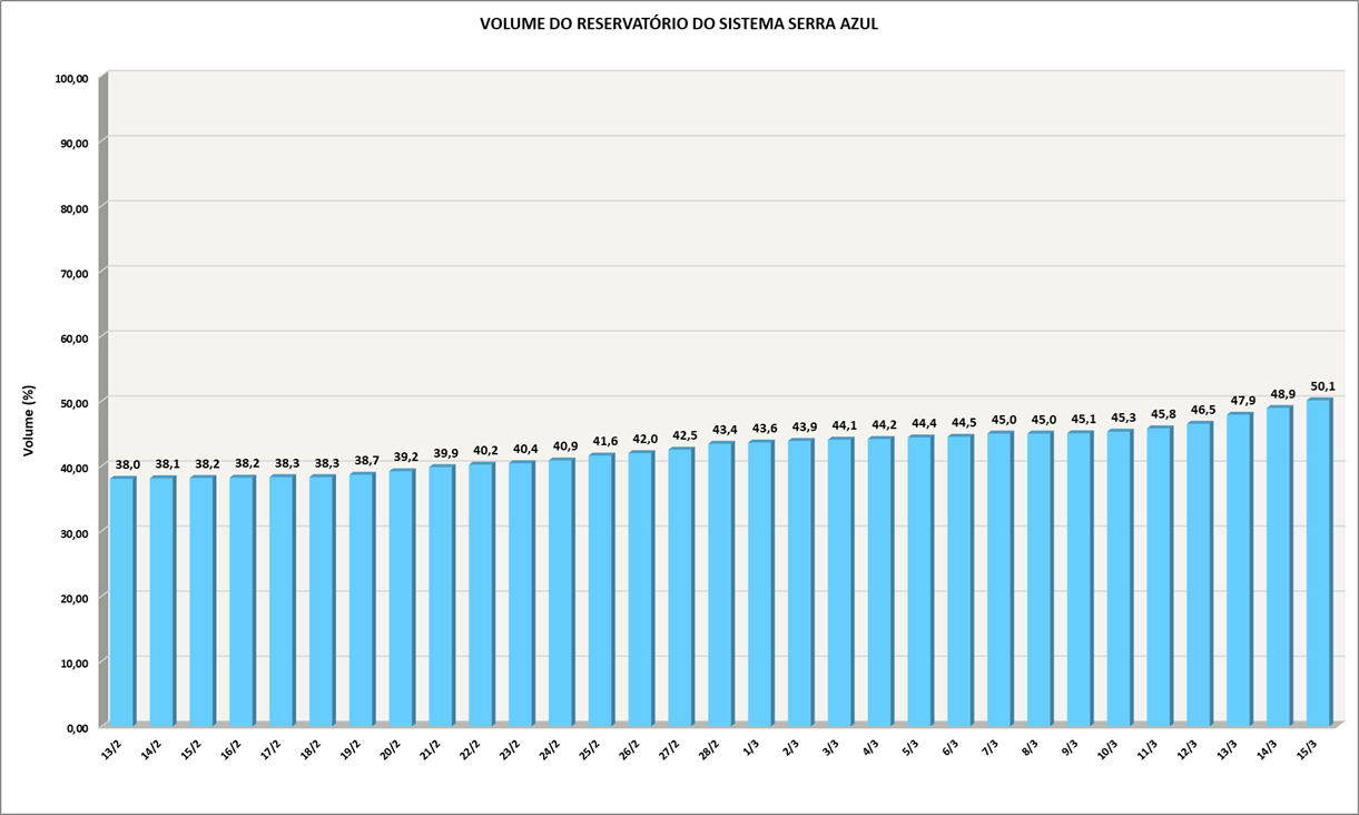 Volume do reservatório Serra Azul nos últimos 30 dias