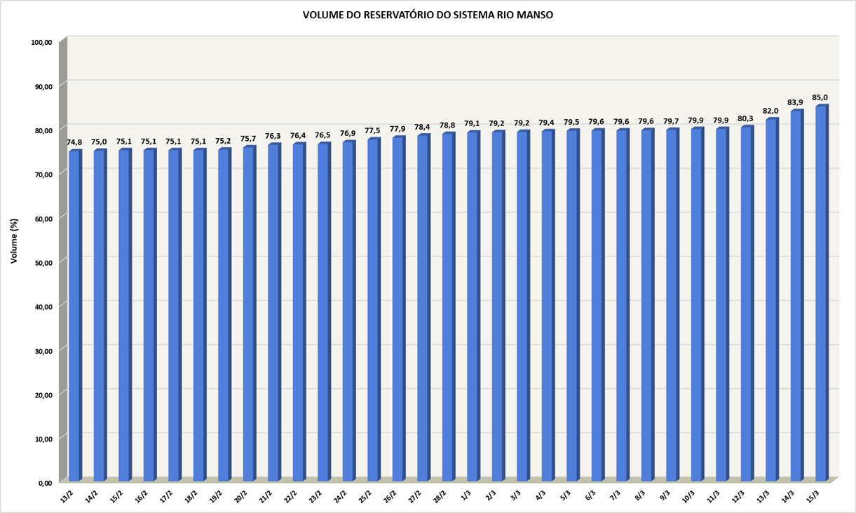 Volume do reservatório Rio Manso nos últimos 30 dias