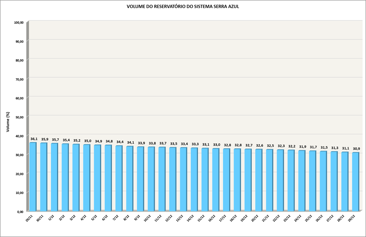 Volume do reservatório Serra Azul nos últimos 30 dias