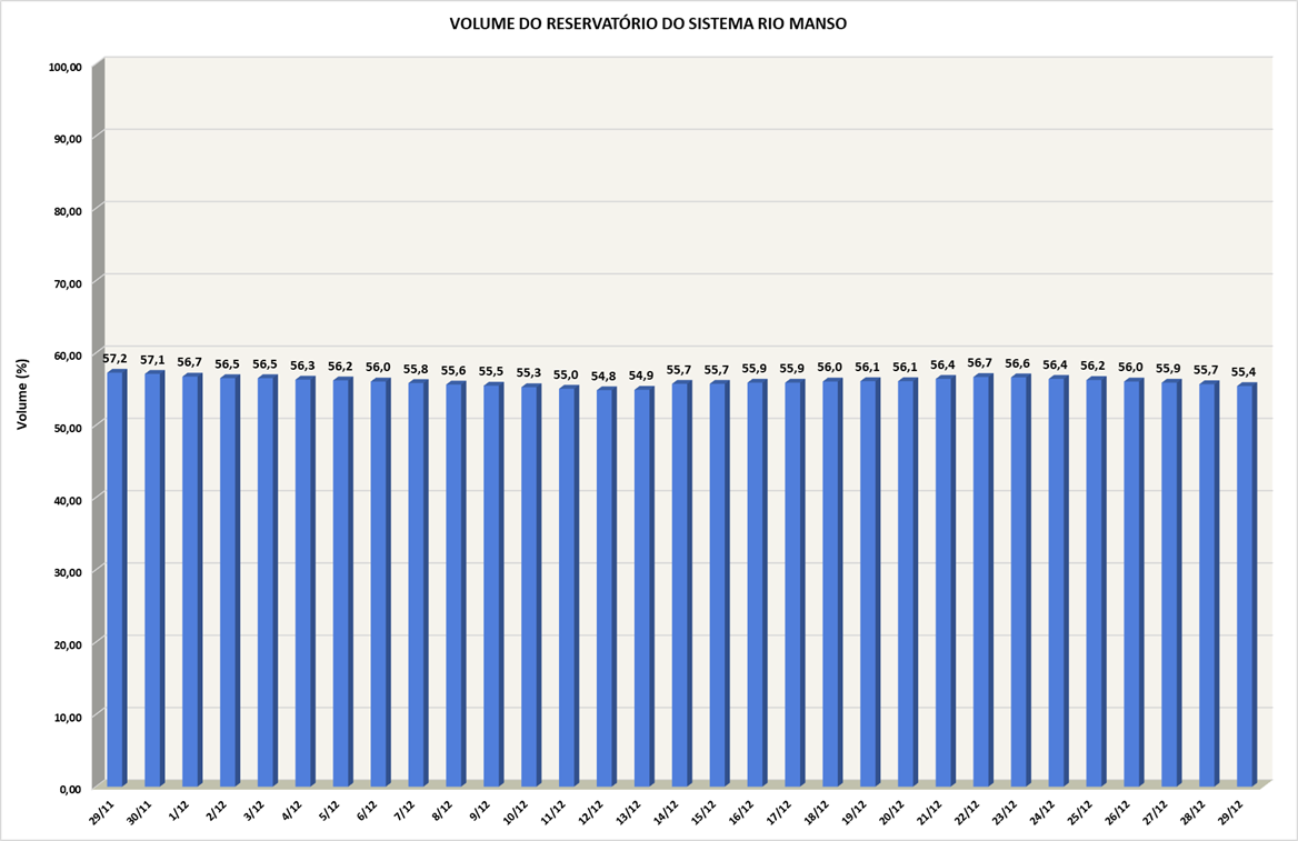 Volume do reservatório Rio Manso nos últimos 30 dias