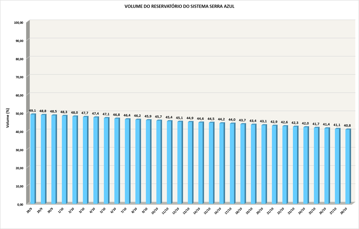 Volume do reservatório Serra Azul nos últimos 30 dias