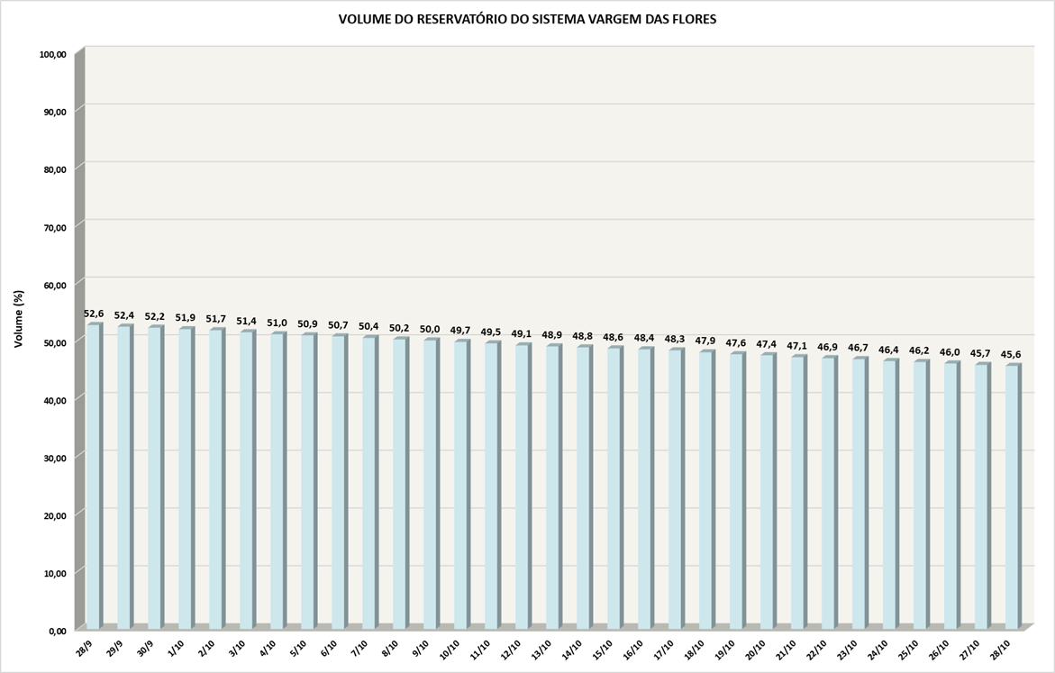 Volume do reservatório Vargem das Flores nos últimos 30 dias
